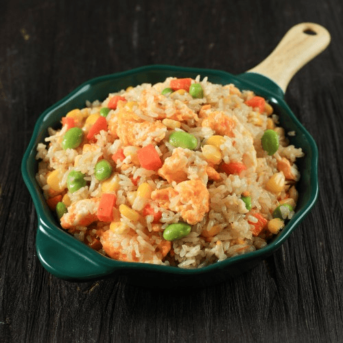 Sautéed seafood tossed in with seasoned rice