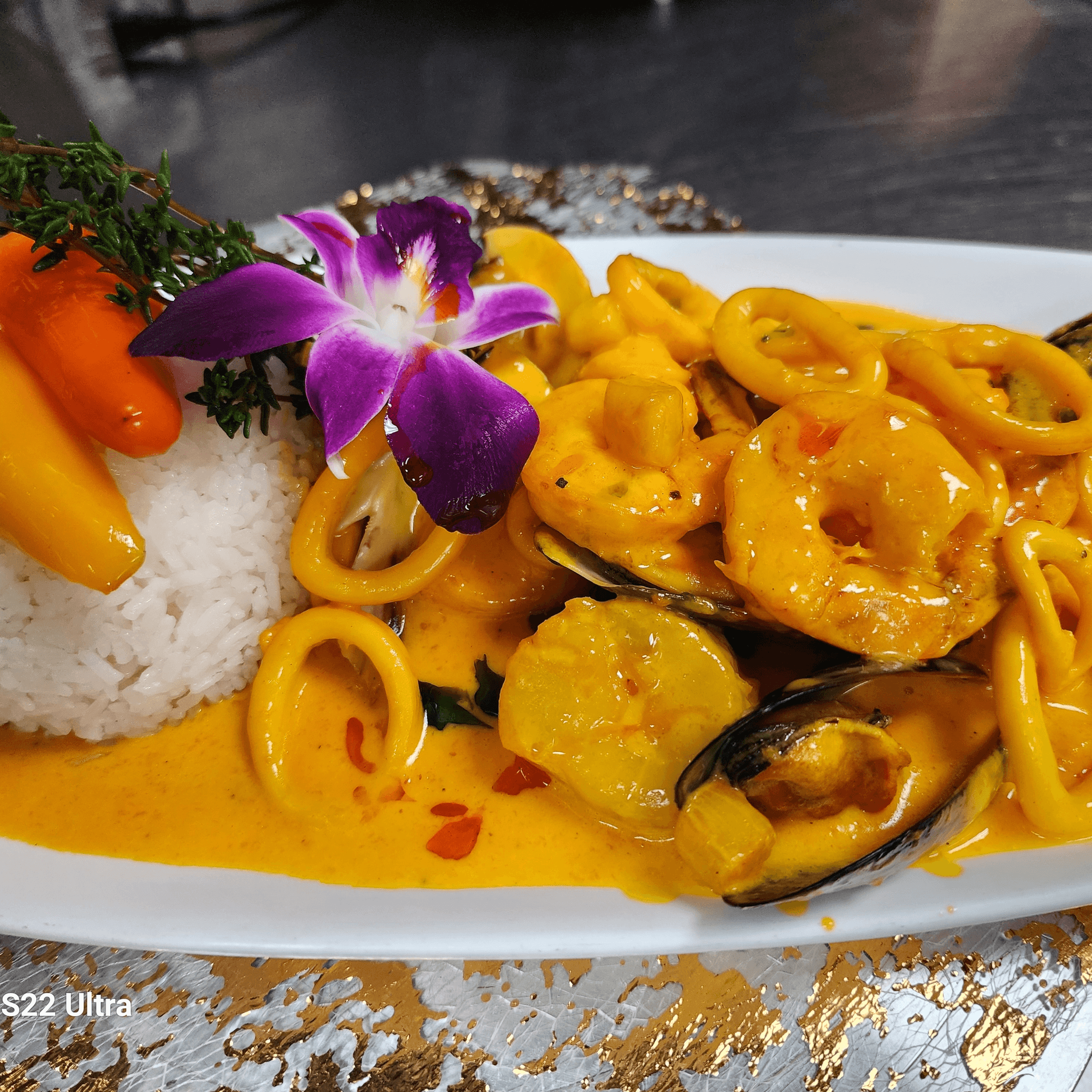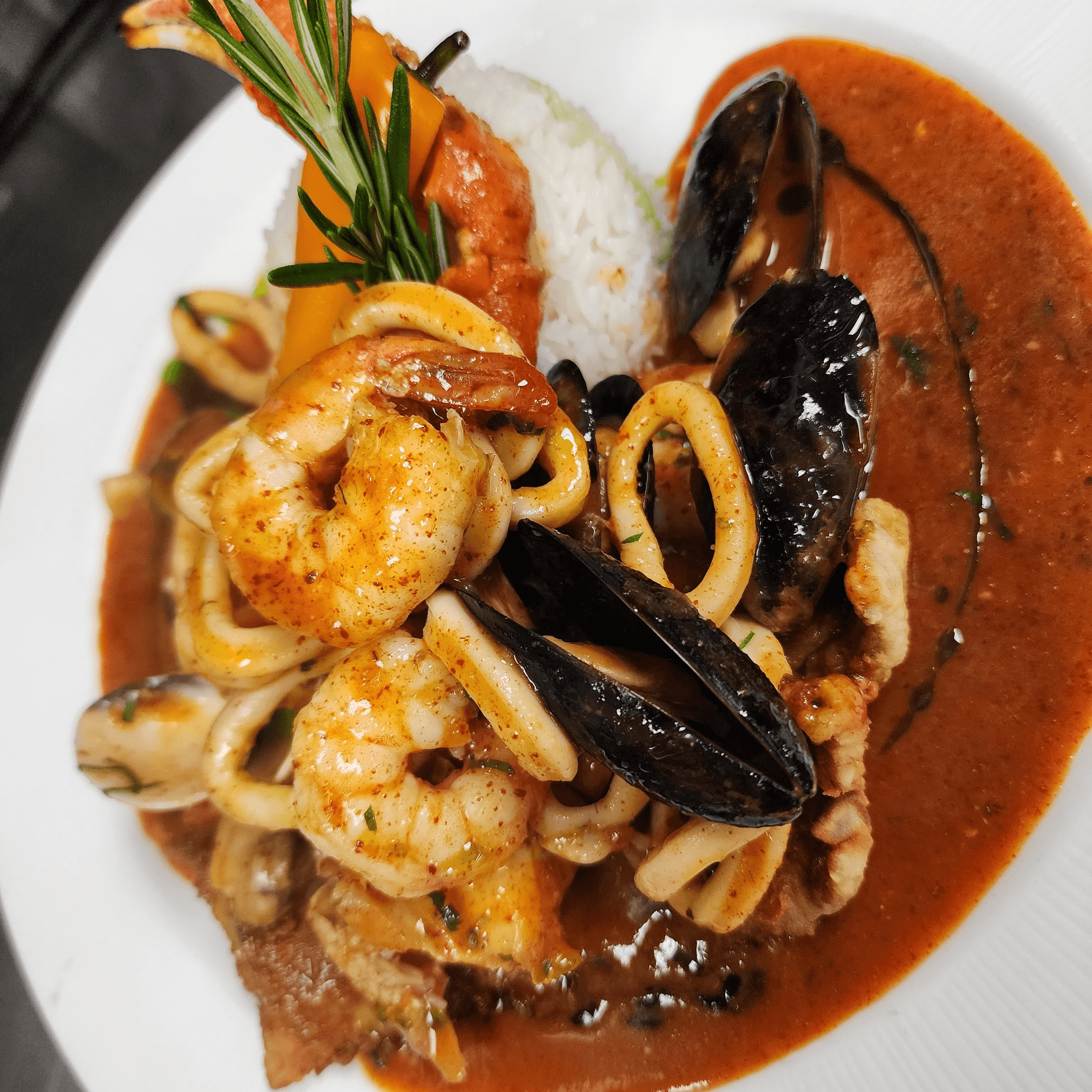 Pisco flambéed seafood, aji amarillo saffron sauce. Served with steamed rice