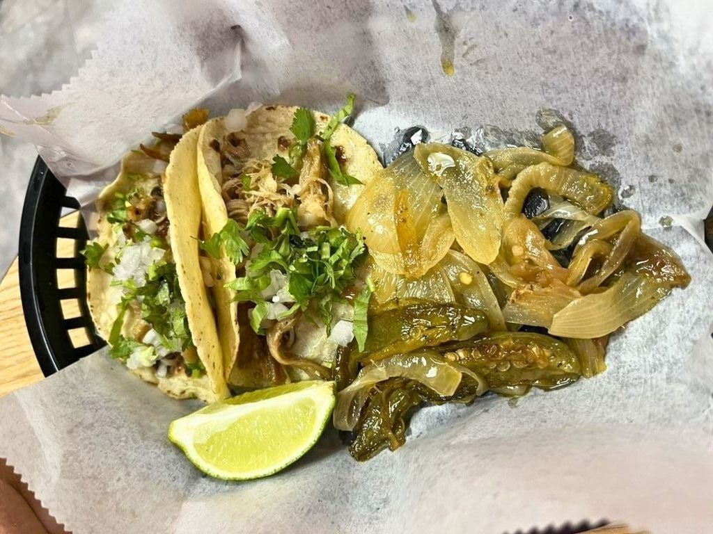 Slow-cooked beef, topped with onions and cilantro, served on a corn tortilla.