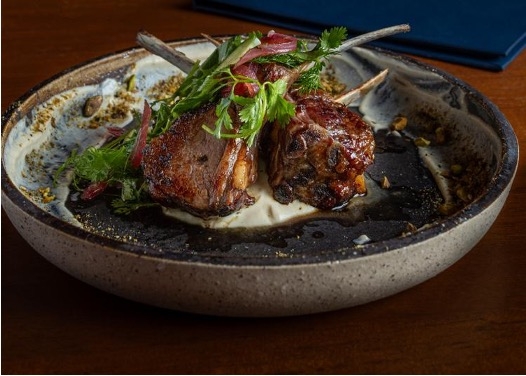We cook the lamb chops to order on our wood fire grill. S erve on a sauce made with tahini(sesame paste), Yogurt, lemon juice, salt and garlic oil. Dukkah: Dukkah is a Egyptian and middle eastern spice mix. Ours has toasted pistachios, cumin seeds, sesame seeds, coriander seeds, black pepper and salt. We top the dish with a mix of cilantro leaves, parsley leaves, cucumber slices, mint, pickled onion and a half charred lemon. Allergies = Dairy, Pepper , Garlic, Sesame.
