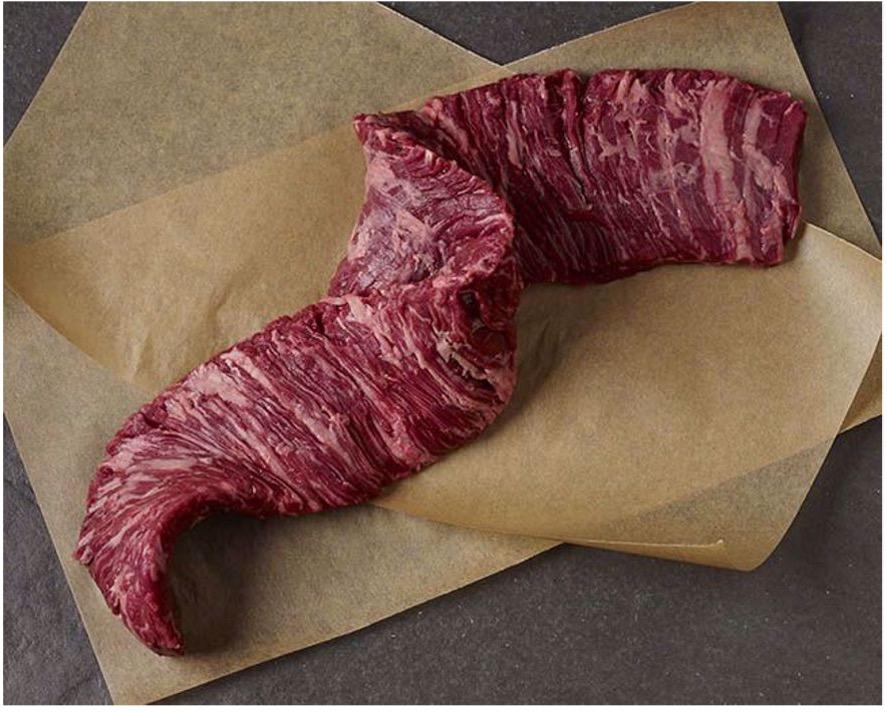 Skirt steak, Churrasco or entraña is one of the most flavorful cuts of beef, and even though it's also one of the tougher cuts with a lot of connective tissue, it's still a great steak for grilling. Skirt steak comes from either of two separate muscles inside the chest and abdominal cavity, below the ribs, in the section of the cow known as the beef plate primal cut. The two muscles are the diaphragm muscle, called the outside skirt, and the transversus abdominis muscle, or inside skirt.