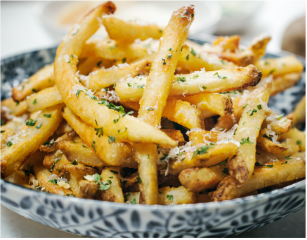 Classic French fries tossed with Parmesan cheese, chopped parsley and truffle oil.
