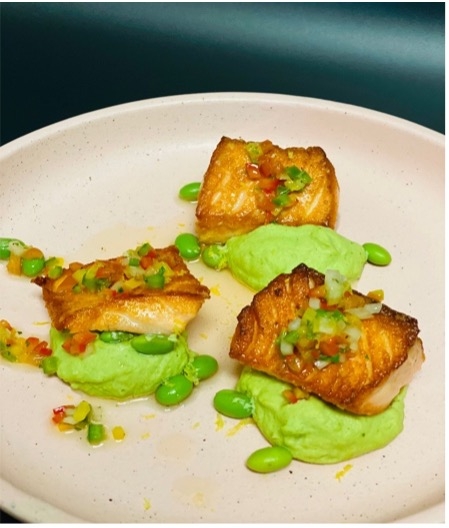 Finest Pulpo imported from Spain ,this time the tentacles are grilled and served on parsnip puree, red chimichurri and pickled onions. Chef G’s chimichurri is mixed with piquillo peppers and smoked paprika, making the red chimichurri. Parsnips are cooked in cream and butter until tender. Pureed and seasoned. *Piquillo Pepper: Type of pepper from Spain. Piquillo meaning little beak. Peppers are roasted, peeled and canned. Allergies = Dairy, Pepper .