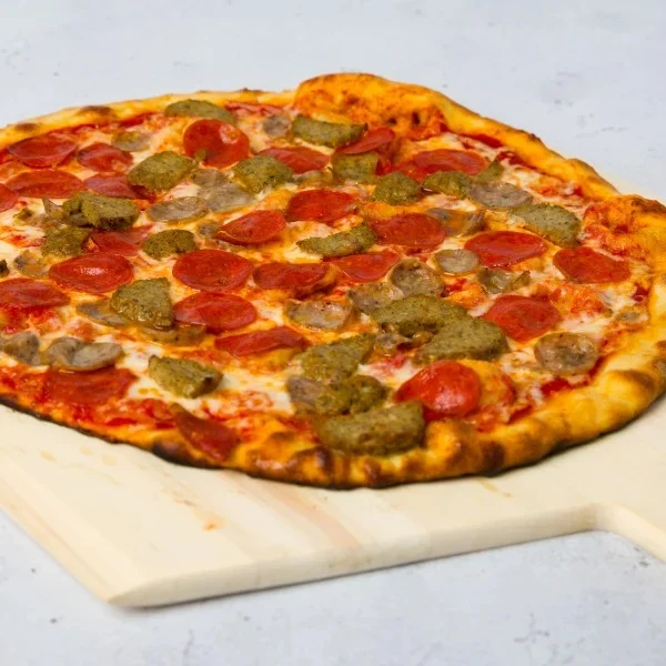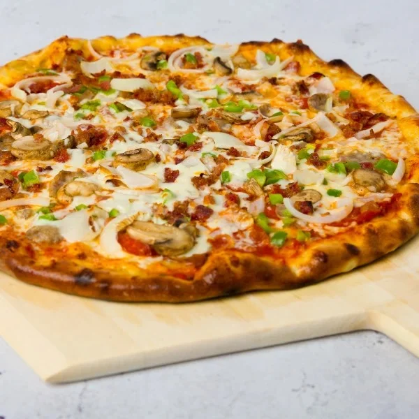 Bacon, sausage, pepperoni, peppers, onions, mushrooms & mozzarella