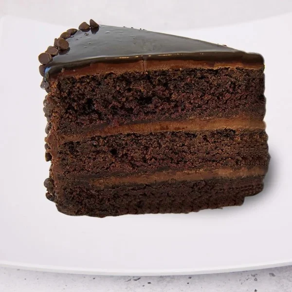 Moist chocolate cake layered with rich chocolate mousse and ganache. A chocoholic's dream.