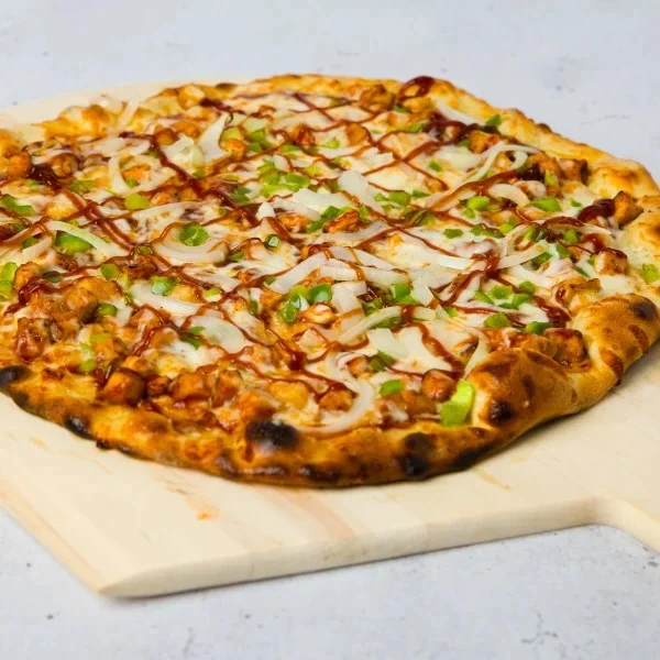 BBQ grilled chicken, peppers, onions and mozzarella