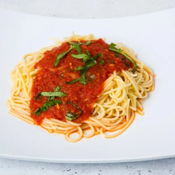Spaghetti in our homemade marinara sauce. Served with our famous garlic rolls.