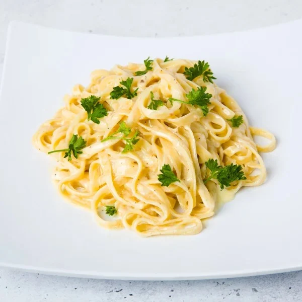 Fettuccine tossed in a homemade Alfredo sauce.