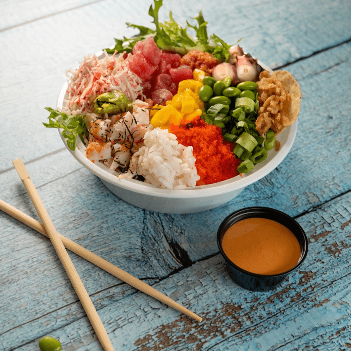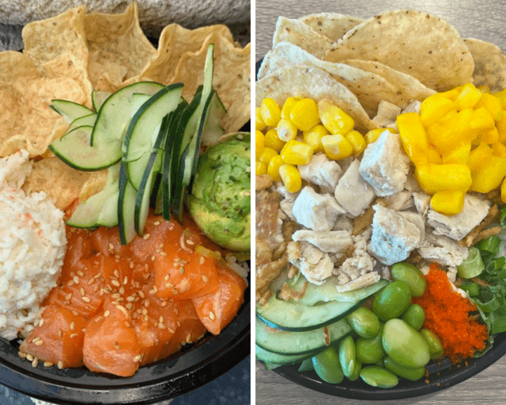 Pick your base and your choice of 4 scoops of protein, fish, shrimp or octopus, and your toppings